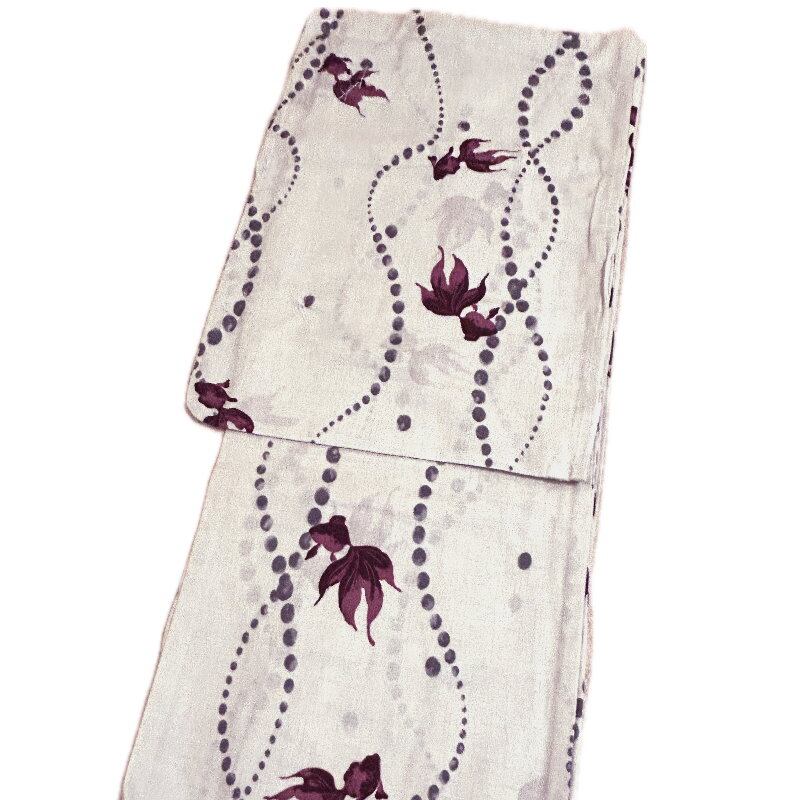 【色 柄】薄いグレー色地に赤色の金魚柄。