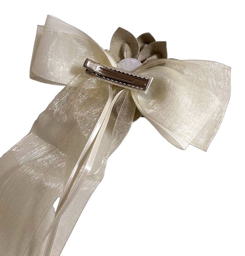 とても可愛くておしゃれなクリップ式のチュールリボンの帯飾りです。