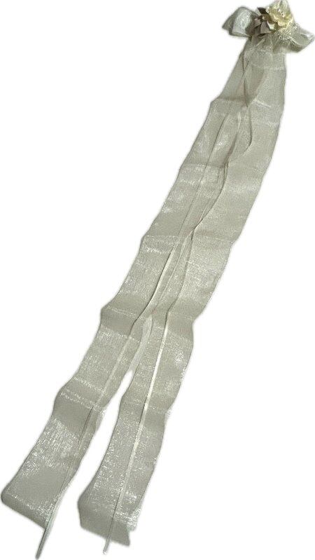 垂れ下がる部分は、細いホワイトのリボンと少しイエロー系のオーガンジー。