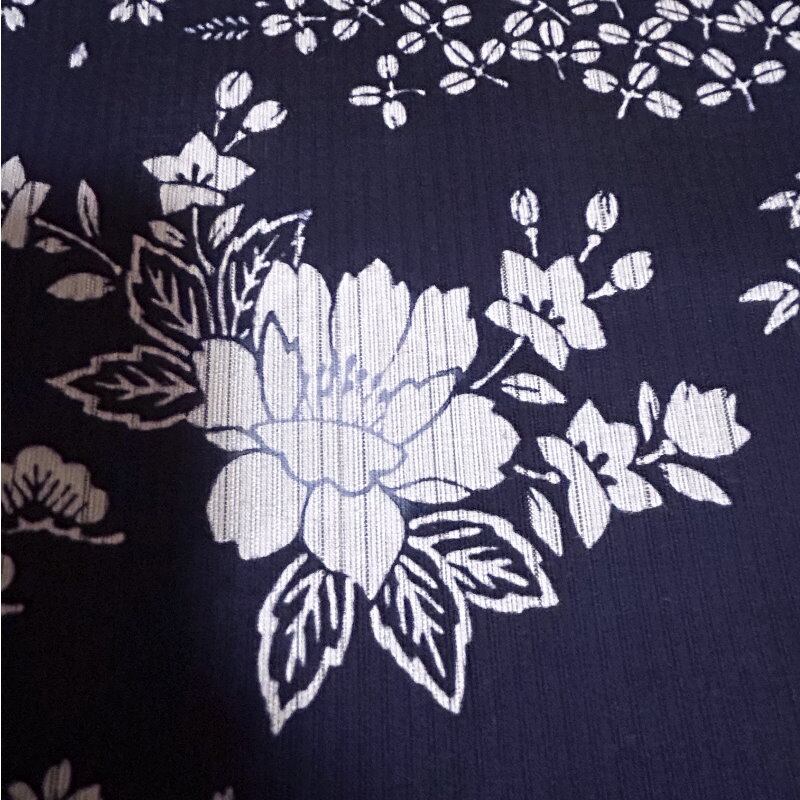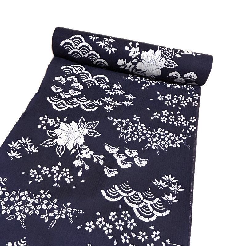 浴衣 反物 浜松注染.しじら織 伊勢型紙 日本製 綿麻 茄子川染(濃紺色 花柄)夏着物 レディース 女性 麻混 お祭り 花火 涼しい [060619]