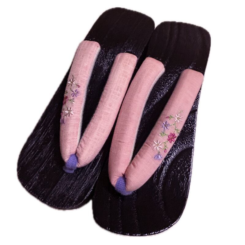 下駄 刺繍 ヒールタイプ 桐下駄 (ピンク系:花柄)浴衣 夏祭り 花火 [210777]