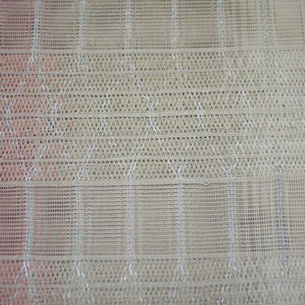【色 柄】ピンクから、ベージュ、ホワイトとグラデーションになっています。シルバーの糸が編みこまれて色々な柄が織り出されています。