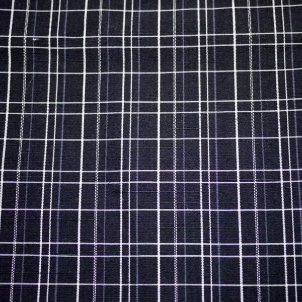 【色 柄】濃紺地に白と紫の格子柄。八掛けも同系色の紺色。