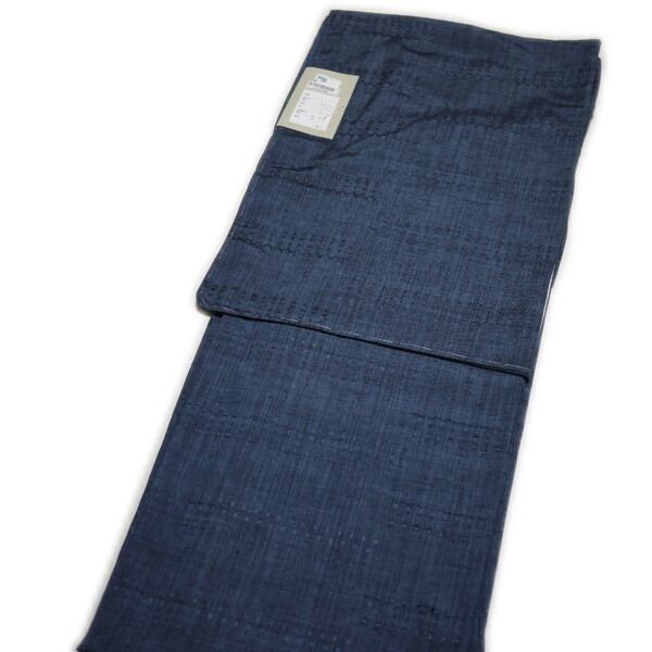 【色 柄】くすんだ紺色地に細い縦縞柄。全体に刺繍で模様があります。八掛は紺色。