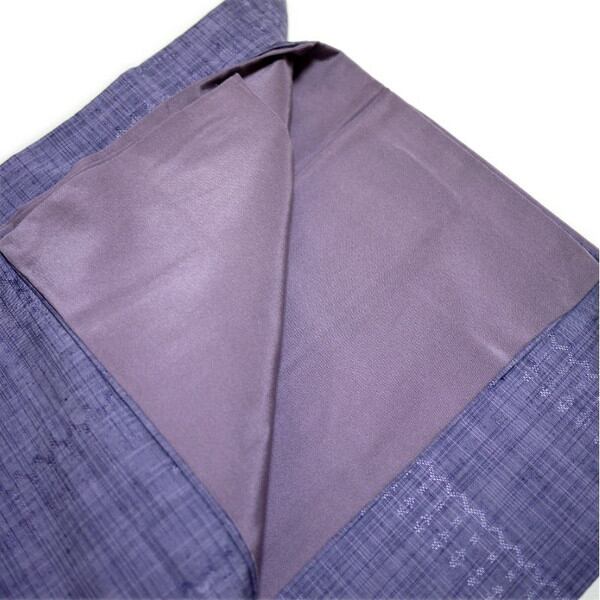 【色 柄】紫色地に細い縦縞柄。全体に刺繍で模様があります。八掛けも紫色。