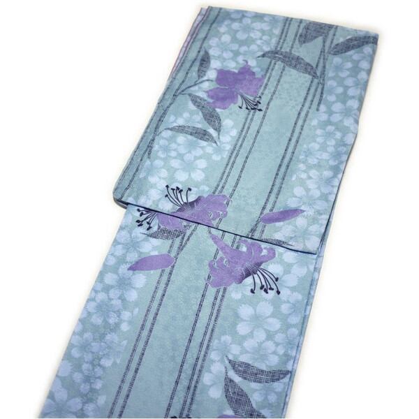 着物 洗える仕立て上がり小紋(袷:ブルー地に百合柄:L寸) [010985]