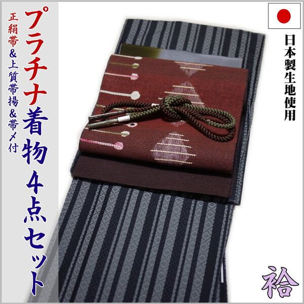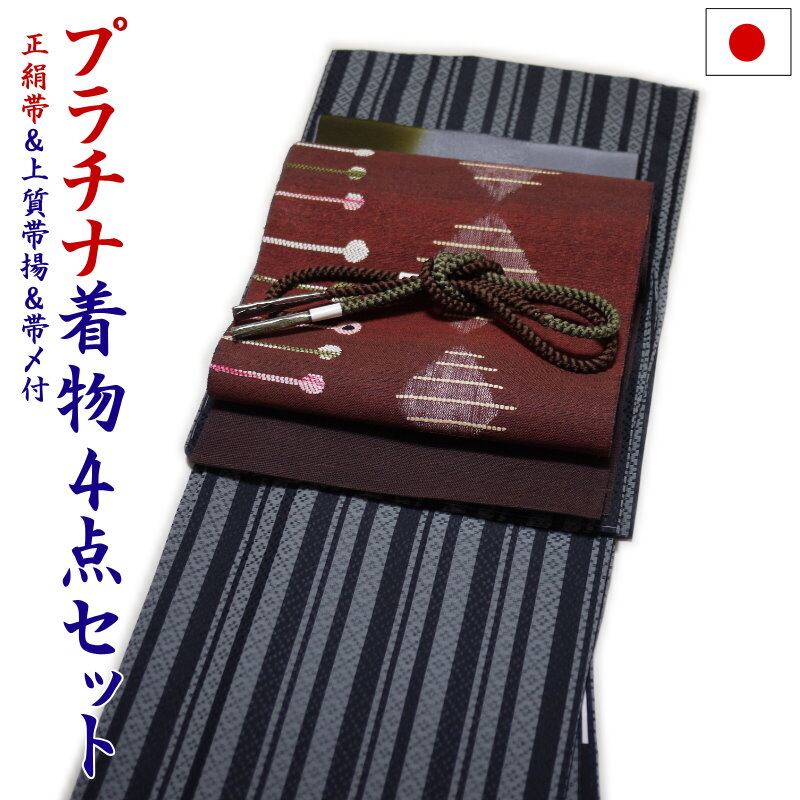 プラチナ着物4点セット 洗えるプレタ小紋と正絹帯(袷:L)日本製生地 [011045set]