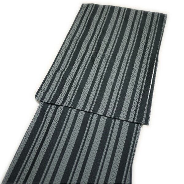 【色 柄】グレー地に黒い縦縞柄。地模様の四角い模様はプリントではなく糸です。八掛けは黒色。