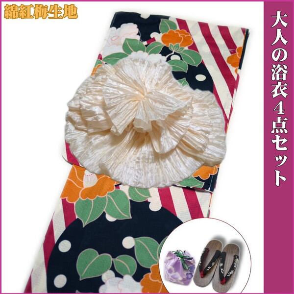 素敵な浴衣・帯・下駄・巾着の4点セット。