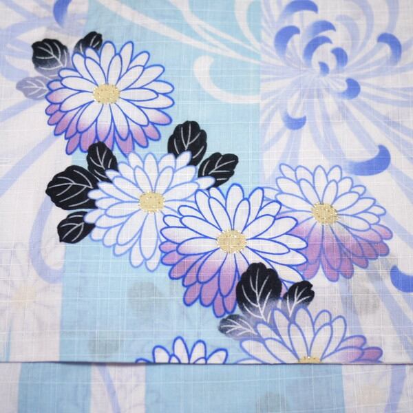浴衣 レディース ラメ入り 高級綿紅梅織(ブルー系 菊柄) [060534]