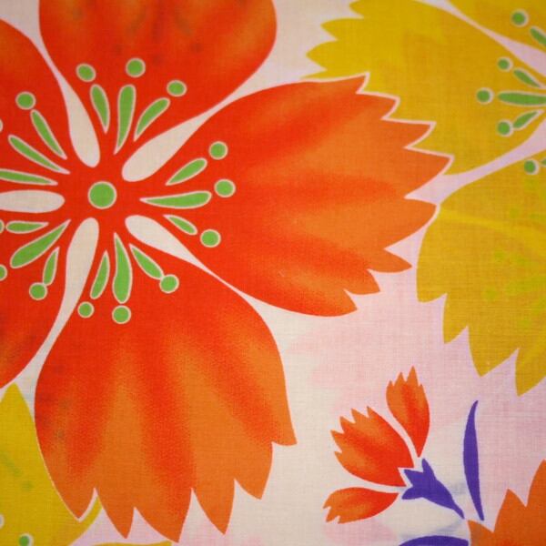 【色 柄】オフホワイト色地に綺麗なオレンジとイエローのナデシコ柄。
