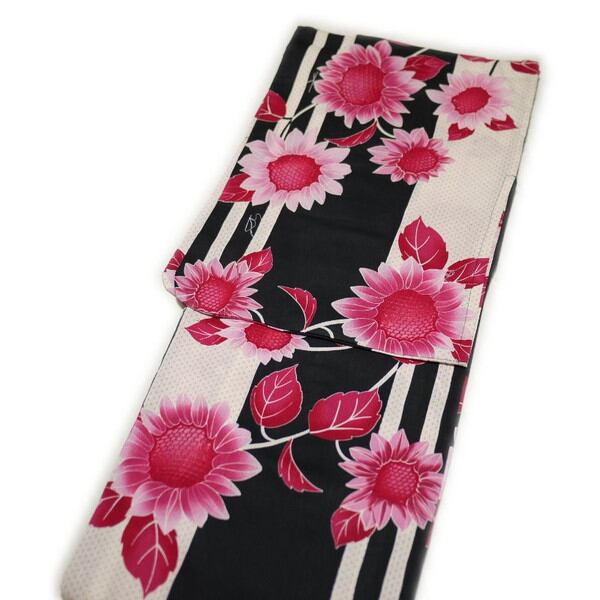 【色 柄】生成り色地に黒のライン。元気いっぱいの赤いひまわり柄