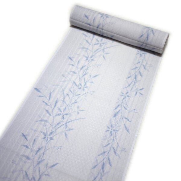 【色 柄】淡いブルー系の地に涼しげなブルーの草花柄、白の縦縞も入っています。市松模様の地柄があって高級感があります。