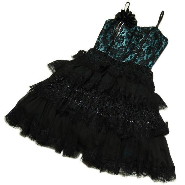 パーティドレス ワンピース 結婚式 クリスマス(バックコルセット:グリーン&ブラック)コサージュ付き [170002]