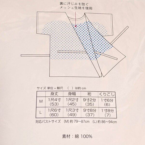 Lサイズ 身丈:約60センチ、身幅:約49センチ、裄:約37センチ、くりこし:約7センチ