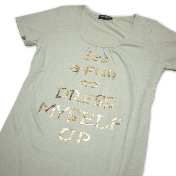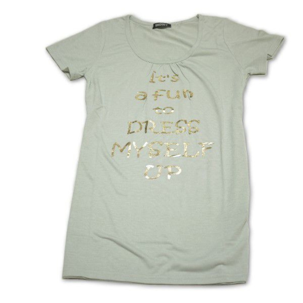 【SALE】 Tシャツ レディース 半袖 モスグリーン地にゴールドのロゴ Lサイズ 【メール便OK】3枚まで可 [170041]