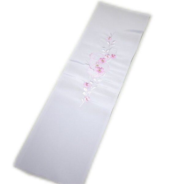 半襟 洗える刺繍半衿(白地にピンク)小紋から振袖まで【メール便OK】 [230798]