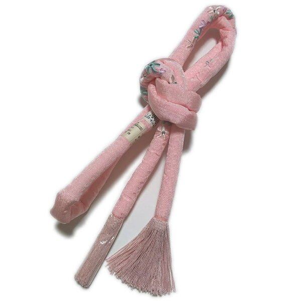 丸ぐけ 帯締め ラインストーン入り 刺繍 より房 撚り房 振袖 成人式 高級正絹帯締め 帯〆(桜色)【メール便OK】 [260221]