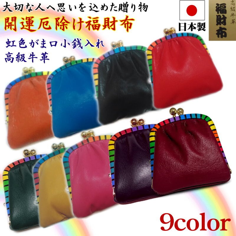 七色福財布 財布 がま口 小銭入れ 虹色 (全9色) 開運 厄除け 高級 牛皮 福財布 小銭入 日本製 厄年 前厄 後厄 お守り 金運【メール便OK】 [a-127]