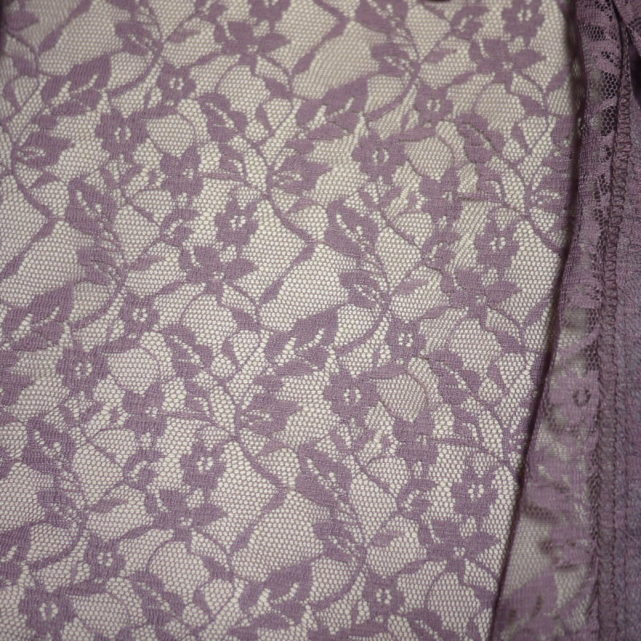 【色 柄】地色はくすんだ紫色のラッセルレースの花柄。