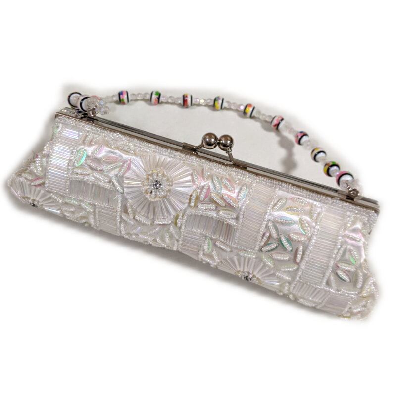 【訳あり】3WAY ビーズバッグ パーティーバッグ(ホワイト)クラッチ バッグ フォーマルバッグ パーティー 結婚式 ビーズ スパンコール 結婚式 2次会 ドレス 卒業式 入学式 キラキラ フォーマル ハンドメイド ウエディング 発表会 [220009]