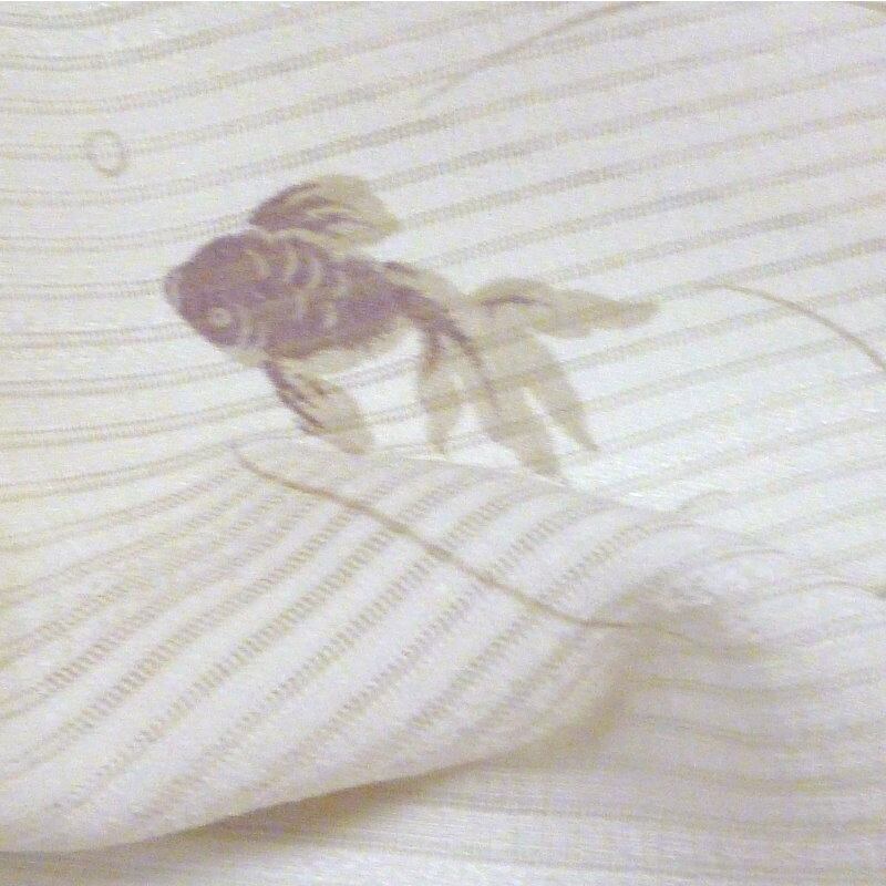 【色 柄】オフホワイト地にブラウン系の涼しげな金魚柄の絽の丹後ちりめん生地の帯揚げ。