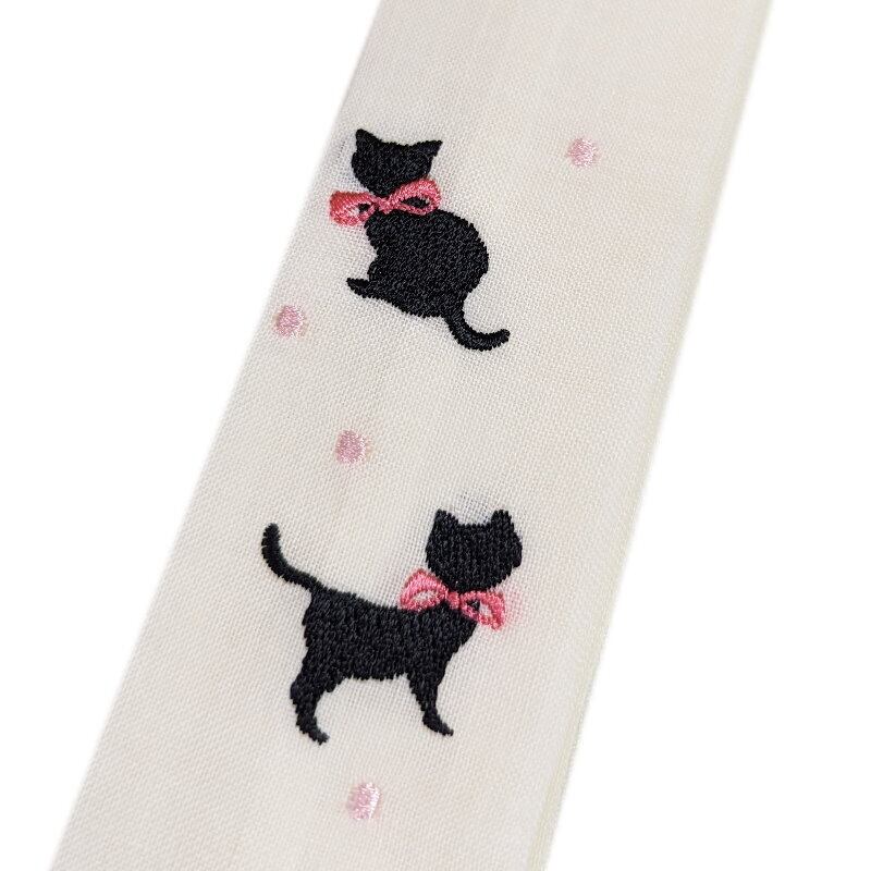 こしひも 黒猫柄 刺繍 腰紐 腰ひも ねこ ネコ 和装小物 着物 浴衣 ゆかた 着付け モス モスリン 妃女着 京楽々【メール便OK】 [400594]