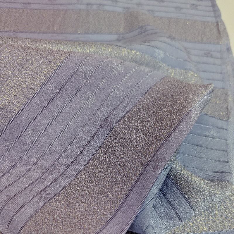 【色 柄】ブルー系とパープル系の二色の染め分けぼかし地に桜と芝柄。金糸も入っているので豪華です。